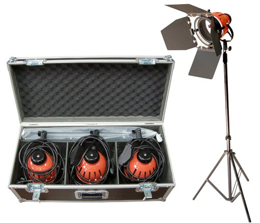 Oświetlenie reporterskie żarowe temp 3200 w kpl ...cena 600 zł+vat. W zestaw wchodzą 3 lampy o mocy 1x 800W, 2 x 600W, statywy, kejsc, filtry do światła 5600.